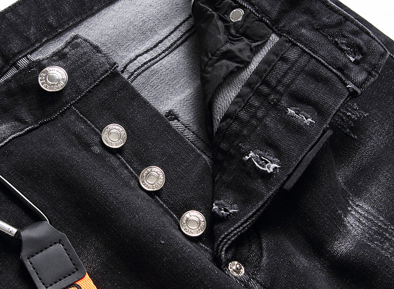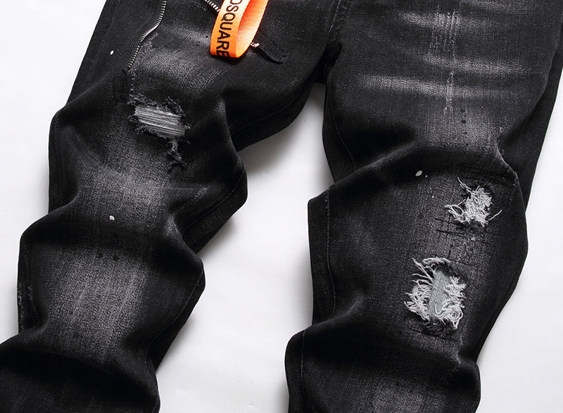 No off-duty edit is complete without a straight-leg jean. This pair toughens up the five-pocket icon with rips and splatters: just add a plain tee/hoodie/sweatshirt and sneakers for an easy throw-on-and-go look.