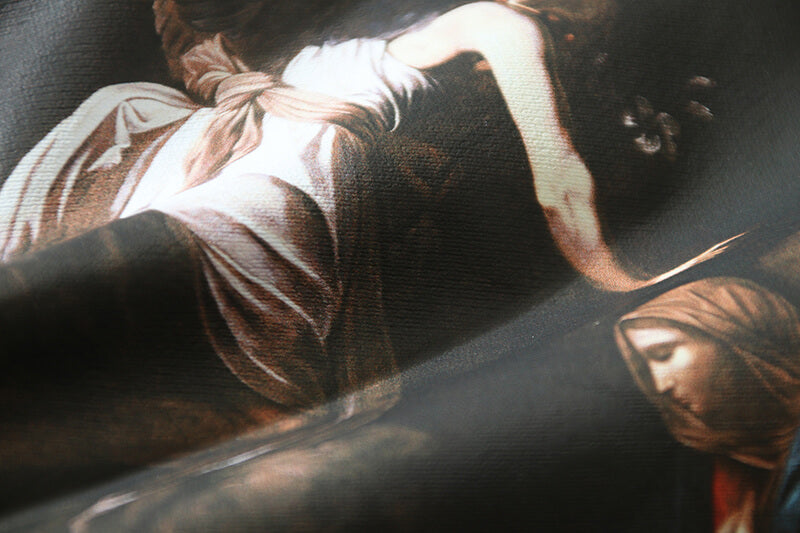 Caravaggio-print hoodie from OFF-WHITE featuring cotton, signature Caravaggio print, logo print at the chest, signature Diag-stripe print, signature Arrows motif, long sleeves, drawstring hood, front pouch pocket and black/yellow.