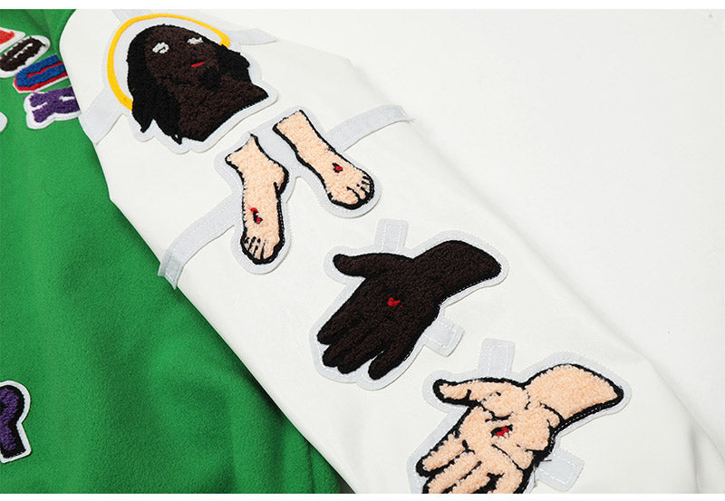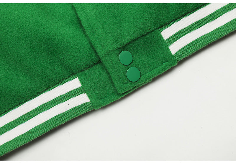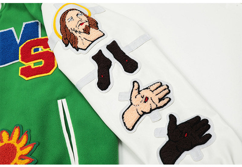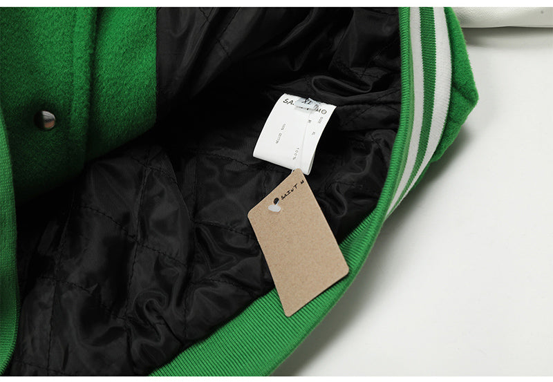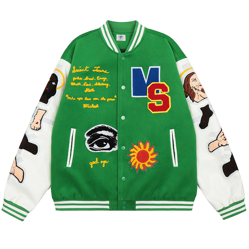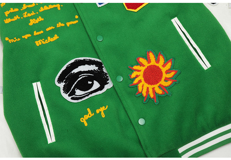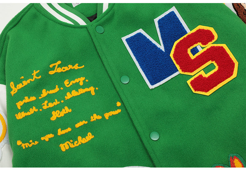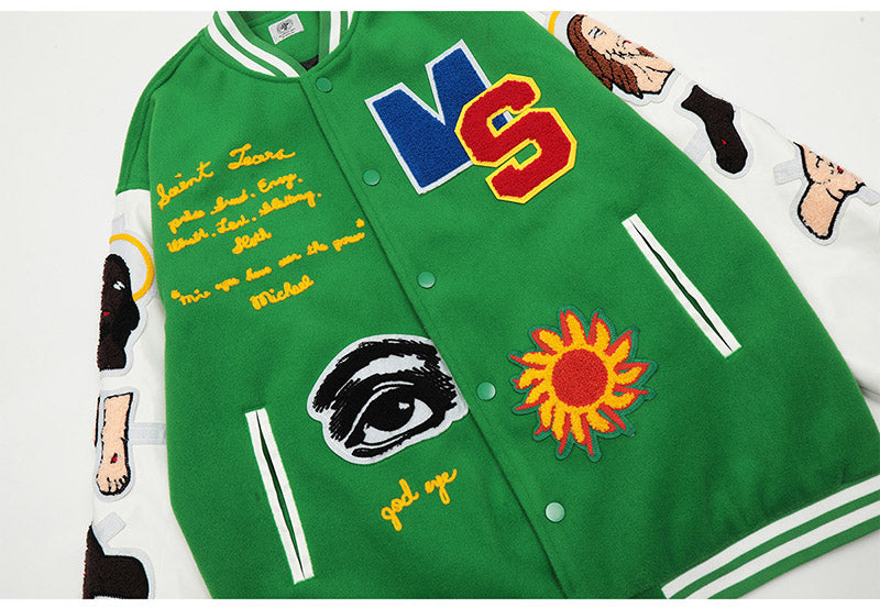 Saint Michael Loose Baseball Jacket With Embroidered Badge-Green